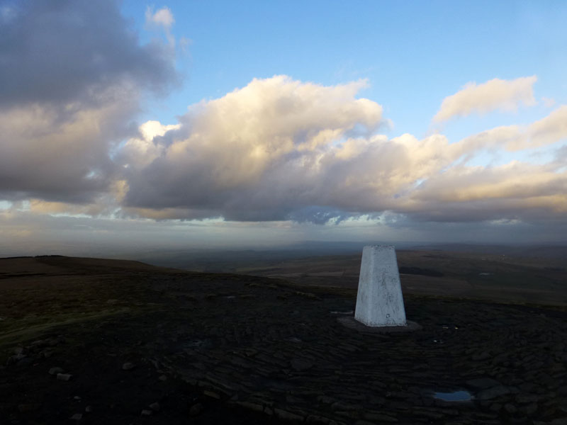 Approaching Pendle Hill on the first after-work ascent of 2014. The "spear" of cloud looks like a lenticular, but I think that it was just a collection of light cumulous clouds, appearing to be as one.