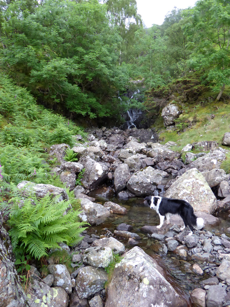 Followers of the gill meet with this sheep gate. Molly and I lifted the woodwork and made our way up to the waterfall.