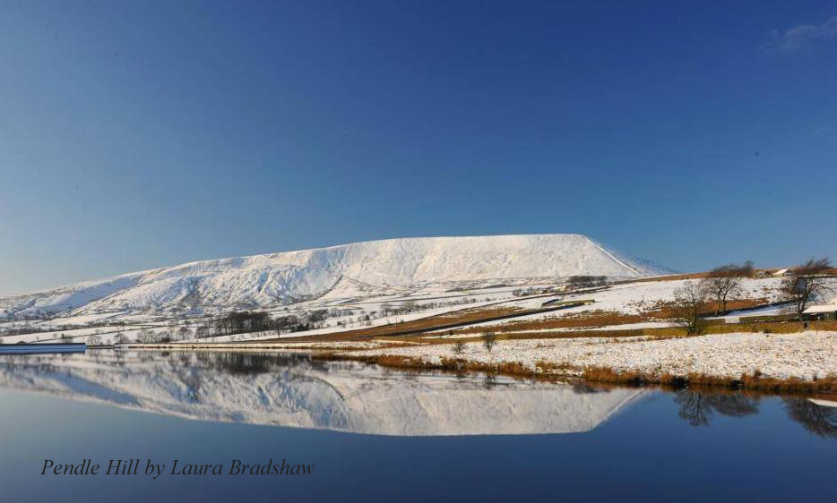 Rather slippy in places on the way down, as you might expect. Local photographer, Laura Bradshaw was not far away and she took the following photograph from Black Moss - Pendle Hill, always best in white!