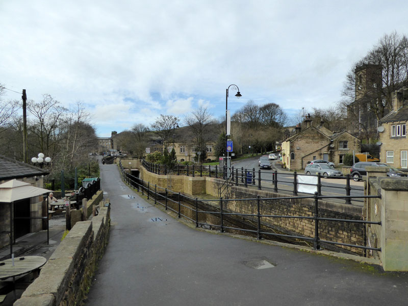Another eating facility on the left here (Ashby's Deli Cafe) , is serving a couple with a dog in the patio area and further on, in the mill, there is a bakery (The Handmade Bakery) with its own cafe area and seating outside for dog walkers. Note how I generously and even-handedly give these places a mention. One cafe has offered me a free breakfast if I should pop by again (not in Slaithwaite), but how can I remain impartial if I accept such gifts? Hmmm, maybe I should give it a go and find out...