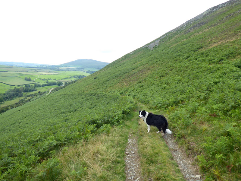 Now, 45 minutes later after a route-finding challenge across the bland landscape of Burn Tod to find the only marked path on the OS map. The path leads back down to Trusmadoor for an ascent of Great Cockup, much to Molly's delight after her earlier disappointment.