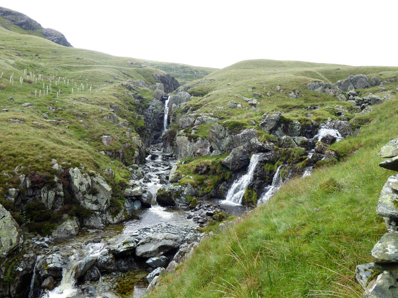 The ascent for Tarn Crag begins in earnest just after the closed track gate. Wainwright says this route is difficult in mist, but for now we are underneath all the clouds.