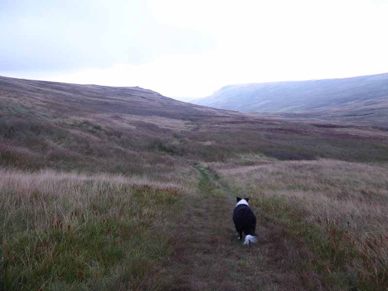 We cross over here and take a rising track to pass beneath the hill named as Scam Matthew and to re-enter Sleddale.