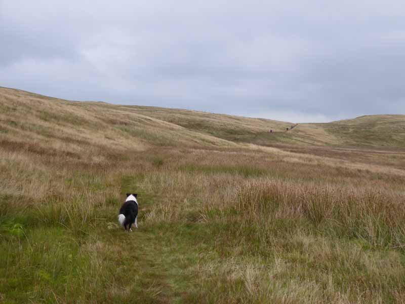 Harrop Pike boasts a fine summit cairn. Molly and I play a brief game of hide-and-seek, but it didn't really last too long. Here we met a man with a dog who had come up from Sadgill and we were caught up by a couple who had parked on the A6 and "followed the ridge" all the way up. Suddenly it's busy!
