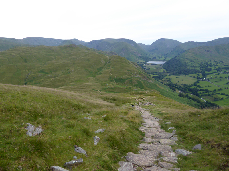 The repaired path may look utilitarian, but believe me, it's a lot better than the mess we inherited from previous generations of fellwalkers. I wonder how many retired walkers, with geraniums growing out of their tatty and redundant boots contribute funds to fell-repairing projects?