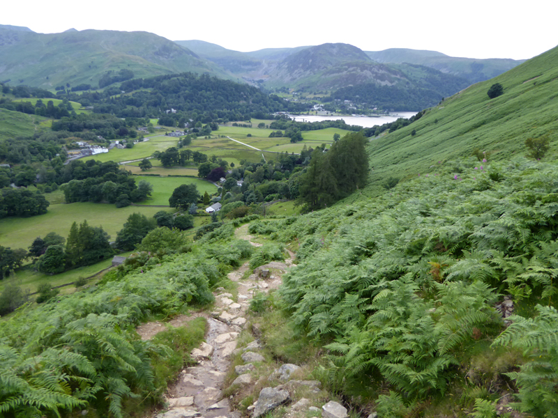 Following on from the direct climb of Sheffield Pike two days ago, I decided to give Place Fell similar treatment. This route, however, can be recommended and is free of danger. It is a scramble at times but nothing too scary, not suitable for pushchairs. Here's a photo of this evening's target fell:
