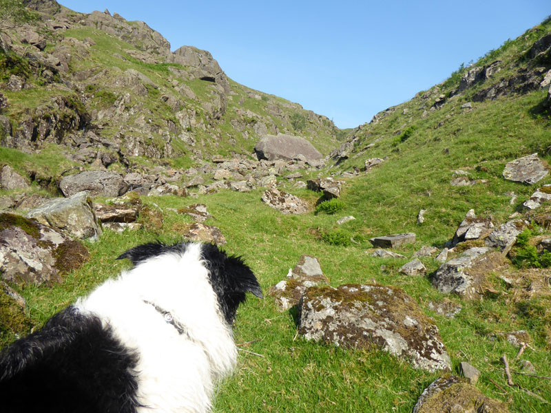 The popular scramble up the front of Pavey Ark is off limits for Molly and I wouldn't like to leave her at the bottom, so we'll have to find other ways to the top, but that's not on today's agenda; instead we will follow Bright Beck to its conclusion and make our way to the top of High Raise.
